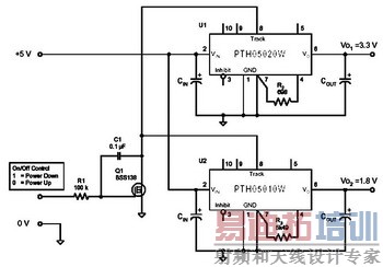图9 PTH03030模块的ON/OFF控制应用电路