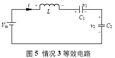 模式2:当i(t1)=0 时,进入该模式,半个谐振周期后结束,等效电路如图5 所示。