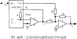 按照式3可算出输出电压Uo与输入二进制数的关系,如表1所列。它符合偏移二进制双极性码的规律。