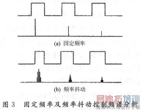 从实际意义上讲,干扰能量被分散在一定频带带宽内,与能量集中的点频脉冲干扰相比,电磁干扰对环境的危害有所降低。频率抖动控制在改变频率的同时,不会对占空比产生影响,也就不会影响输出电压。