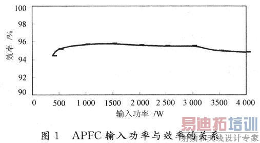 经过调整后带整流桥的Boost APFC的输入功率与效率的关系,如下图1所示。