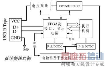 本设计的应用实体是一个工业上使用的便携式设备,采用Altera的FPGA和其上的NIOS II嵌入式处理器,并使用USB接口与电脑相连接,面向的是大数据量应用。这个设备需要30V直流电压,所以计划使用4个1000mAh锂聚合物电池串联的电池组;另外,出于防水防尘的考虑,对外只使用一个方形的USB接口(USB B Type Socket),这个USB口同时兼具数据传输和充电的功能。
