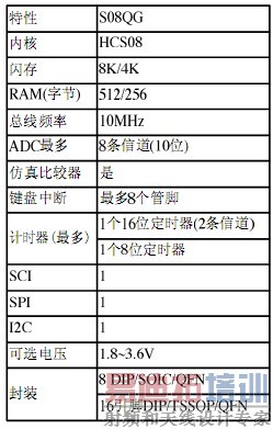 表2 MC9S08QG8/4的特性