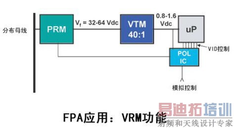 而分比式功率架构中的VI芯片克服了这些问题,把“稳压”与“隔离及转换”功能分开。稳压是由VTM前面的PRM提供,而VTM则作为隔离及电压转换(可作任何比例转变)并且可在负载点上工作。因此任何情况下,或在任何地方,只要有需要,都可使用分比功率架构和VI芯片。分比功率架构可取代集中式、分布式及中间总线式架构从而获得更灵活、便宜及高效的电源系统。而PRM及VTM的配对数目只需根据输出电压的数目、功率、个别的稳压或系统的容错要求增减,而且VTM及PRM VI芯片还可并联,组成均流的高功率或带冗余功能的电源系统。