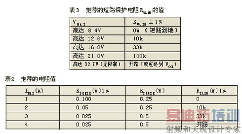 VLIM引脚到GND之间连接的外部电阻值可以决定5个充电器输出限压值中的任一个(见表3)。这种用硬件实现限压值的方法是一种比较安全的措施,它是不能被软件方式所取代的。