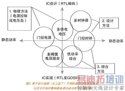 图5中,根据静态与动态功率以及这些技术所应用的设计抽象层次,对各项功率优化技术进行了分类。使用这些方法中的哪项或哪几项要取决于设计目标。将这些方法结合到设计流程中,就形成了一种集成式的功率管理设计策略。