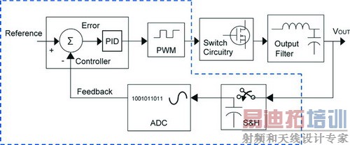 采样保持(S/H)电路通常每2"10ms进行一次采样,ADC需要大约500ns将模拟反馈信号转换成为数字值。PID控制器是一种运行于DSC的程序,有大约1"2ms的计算延迟。该控制器输出可以转换为一个PWM信号,由它来驱动开关电路。当进入新的占空比时,如果PWM发生器不能立即更新其输出,就可能出现明显的延迟。晶体管驱动器和相关的晶体管也会引入大约50ns到1微秒的延迟,其长短因使用的器件和电路设计而异。