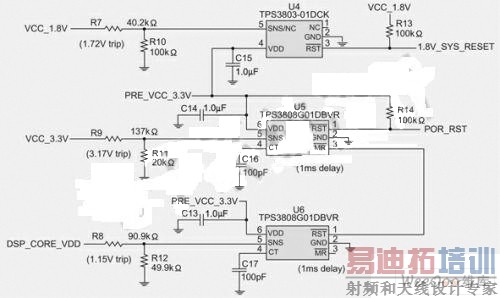 图2:轨电压复位和电压监控电路