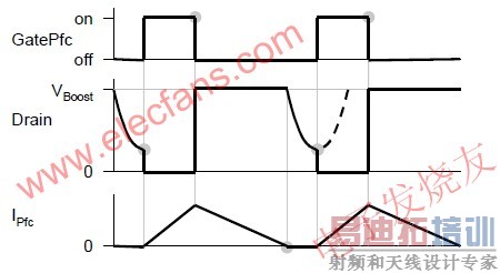 PFC由升压拓扑电路构成(图9)。该拓扑形式可以产生恒定的高压,作为后续谐振转换器的输入电压。特殊的内置绿色功能可以实现各个功率级别的高效运行,支持大功率输出。准谐振非连续工作模式,带波谷跳跃和中 功率输出的准谐振工作模式和低功率输出打嗝模式。