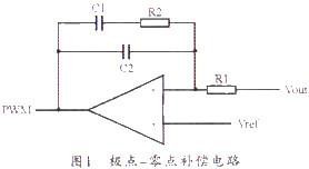 由于不同电源采用的控制方式不同,相应的补偿方式也不同,本文采用电流型控制方式,采用的补偿方式为极点一零点补偿。其电路如图1所示。这种补偿方法在直流处有一个极点,可通过提高误差放大器的开环增益来改善输出调节性能。在输出滤波器最低极点频率或以下处引入一个零点,可以补偿滤波器极点引起的相位滞后。