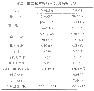 该DC/DC电源模块是为整机配套使用的。其要求的输入电压为20~35V,输出电压为10~10.1V/10~10.2 V(-55℃~+125CIC)、5~-5.1V/5~-5.2 V(一55℃~+125℃),负载调整率和电压调整率均小于1%,输出纹波电压小于40 Mv