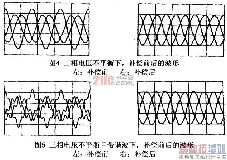 仿真波形如图示,图4是补偿前三相电压的幅值是不平衡的,补偿后三相电压的幅值基本平衡了。 图5是补偿前三相电压不平衡而且含有谐波,补偿后三相电压基本平衡,而且谐波含量也大大减少。