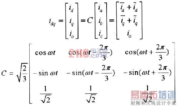 瞬时三相电流或电压通过如下的变换,变换到d-q坐标上: