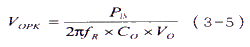 Vopk为输出纹波电压的峰值,fr为纹波频率Co为输出电容,Vo为输出直流电压。