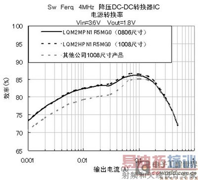 便携设备的小型、薄型化需求促使搭载于上的元器件尺寸也必须越来越小。电源电路中的DC-DC转换器的小型、薄型化可以使开关频率更高,周围元件更小型化。村田制作所在对小型叠层型功率电感商品的开发过程中,制造除了具有优良的电流-感值偏执特性,在通电状态下的磁束泄漏量较少的1008和0806尺寸产品。今后将更进一步开发更加小型化的0805和0603尺寸叠层型功率电感,为便携设备的高性能小型电源电路设计做贡献。