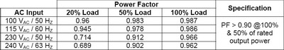 表3:各种负载条件下的功率因数。