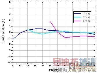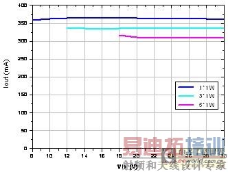 图6与图7是BP1361在驱动1W及3W的LED在降压恒流应用中的输出特性。可以看到在输入电压很宽的范围其恒流精度可以做到±2.5%以内。