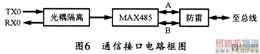 综合考虑总线的传输距离和抗干扰能力等因素,本设计在控制板上采用RS-485接口,并采用差分方式传输信号,故其抗共模干扰的能力很强。