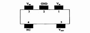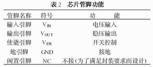 为了满足便携式设备小体积的要求,芯片可采用SOT-23封装,电路中需设置5个引出脚,管脚功能如表2。
