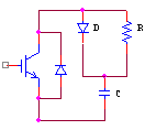 弧焊逆变电源进入焊接状态时,输出端即从空载转入接近短路状态,这时要求输出电流必须处于所需要的恒定状态。理论上,采用恒流闭环控制系统即可以控制电源的短路电流,但实际短路时,输出电压很低,即IGBT的工作脉宽很窄,才能保证输出电流恒定,这就造成了IGBT在很短的导通期间,吸收电容未分放电而马上关断,且因分布电感和漏感的影响,IGBT的关断是在承受较高的反压下进行的,极易使IGBT损坏,为了使IGBT 关断过电压能得到有效的抑制并减少关断损耗,需要给IGBT主电路设置关断缓冲吸收电路。IGBT的关断缓冲吸收电路分为充放电型和放电阻止型,从吸收过电压的能力上来说,充放电型效果较好,所以可在弧焊逆变电源中的IGBT过压保护缓冲电路可采用图4所示缓冲吸收电路: