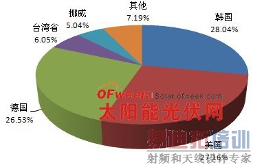 图表8:2011.10我国多晶硅分国别出口量情况(单位:%)