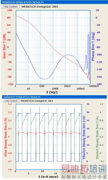 WEBENCH是网上设计工具,用四个简单步骤即可完成实现一个完整的开关电源设计。图7和图8显示了用WEBENCH设计获得的波特图和开关波形。