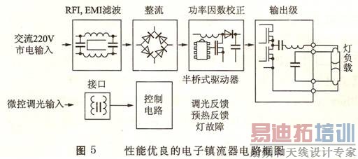 一个性能优良的高频交流电子镇流器电路的工作原理框图如图5所示。