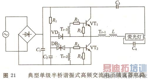 (1) 电子镇流器的典型应用电路与工作原理