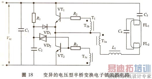 (2) 变异的电压型半桥变换电子镇流器电路