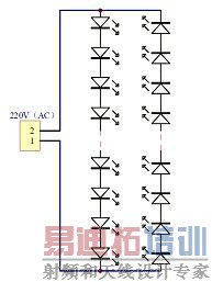 为了兼容各国电压标准,要分4个部分串接而成,这样在220V取值一半正好是110V电压,规格上得到统一。交流LED理论上是正确的,可行的,市电50-60Hz单串LED分别工作在两个正负半周,无论你怎样设计,总体上雷同。