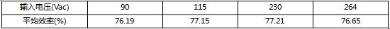 备注:115/230Vac效率满足76.65%限制,效率测试为PCB板端USB口(不带线充电器)。