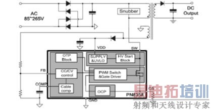 PN8358通过脉冲采样变压器供电绕组信号,闭环控制调节输出电压: