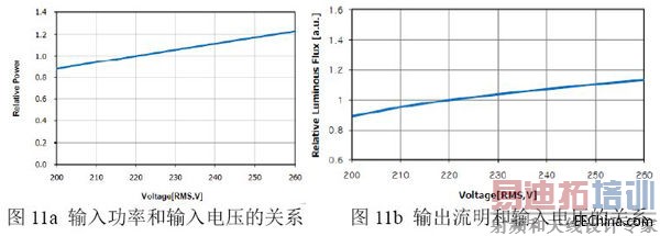 图11a 输入功率和输入电压的关系 图11b 输出流明和输入电压的关系