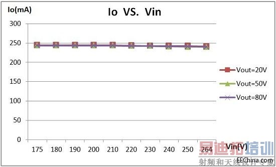 图5所示系统的负载调整率为0.4%。这就意味着用一套电源系统就可以带多套LED灯负载,在不同的负载下系统依然可以实现高精度的恒流控制,这为电源的生产及使用带来了很大的方便,使之在市场中占有优势。