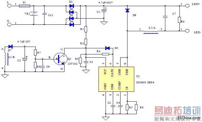 随着LED照明技术的不断发展以及LED照明灯具体积小构造简单的特点,LED照明灯具越来越受到欢迎。但是由于LED照明灯具价格较高,使其在百姓生活中的应用并不普遍。所以为了提高LED照明产品的性价比,满足低成本的要求,LED驱动电源将更多地从隔离式向非隔离式过渡,总的元器件数量必须要尽可能地减少,而驱动电源的效率和恒流质量也要不断提高。
