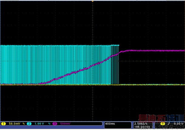 实际调试时,图1 的Vd 处外接一个可调电压,并由0V 慢慢增大。可以观察到,当电压超过1.33V 后,驱动信号便立即被关闭,符合预期,如下图3(CH3 为Vd 电压,CH2 为DPWM0B)。