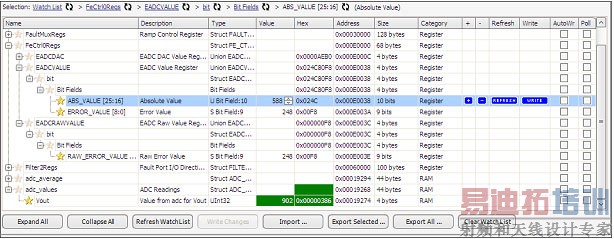 例如,某条件下,EADC 的输出(ERROR_VALUE)为192;DAC 的输入为747;绝对值量(ABS_VALUE)为624,如下图2 所示。