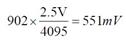 如图 4,当Vd 为554mV 时,ADC15 的结果(adc_values.Vout)为902。二者近似符合下面的等式: