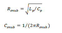 一旦求出寄生电感Lp和寄生电容Cp,缓冲器电阻Rsnub和电容Csnub便可根据下列计算进行选择。