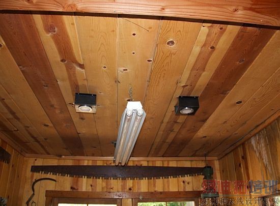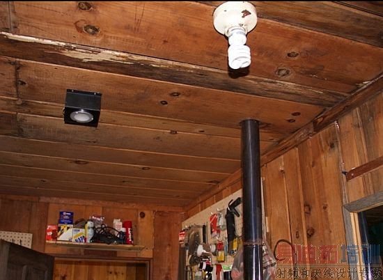 图3所示为餐厅。我们将原先的日光灯留在原地,因为它们已与发电机相连一起使用。如果你可以将汽油运到森林里并且可以忍受发电机的噪声,那就可以通过80W双管灯具使光线稍亮一点。然而,两个20W的LMH-2就可以提供差不多的光亮,并且颜色更好。