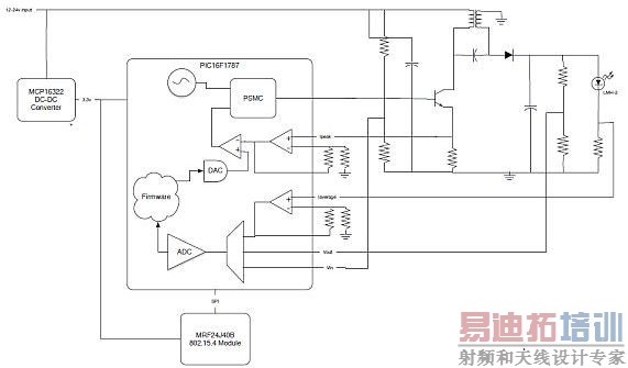 设计开始首先来看一下CREE公司的850lm、10W LMH-2灯具。我一直使用CREE 的这款灯具作为MCU控制的DC-DC转换器的光源,因此很熟悉它的规范。该灯具工作在20V时需要大约500mA的电流,并且能根据温度和寿命的影响校正色温。我的工作将是为这些灯提供电源并将它们安装在小木屋内。电源采用9~24VDC输入SEPIC拓扑,由Microchip的PIC16F1788 8位MCU驱动。PIC16F1788具有一个运放、可编程开关模式控制器(PSMC)、DAC、ADC和产生数字控制、模拟驱动电源所需的比较器。该MCU具有大量的代码空间,可用于保存RF控制灯所需的2.4GHz 802.15.4无线控制软件,但此功能未在小木屋使用。使用规定的输出流明和精确的输入功率时,每个LMH-2和SEPIC灯具可产生70lm/W的光效。