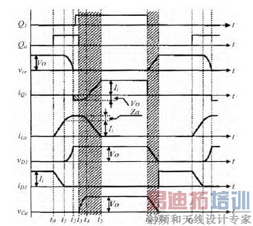 辅助电路只是在主开关管Q1开通的时候起作用, 其他时候停止工作。为不影响主电路的工作时间,辅助电路的工作时间不能太长,假设该时间为taa,一般可选择为开关周期Ts的1/10,即t01+t12s/10,可得: