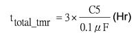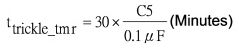 此外,安全定时器(Safety Timer),可避免因电池损坏时充电时间过长,造成危险。只要充电时间达到设定的安全计时时间,即便电池还未达到终止电压,充电IC也会关闭充电电流,停止充电。安全计时时间可以透过电容C5来设定,预先充电(Trickle Charge)模式下之安全计时时间可由下列公式计算: