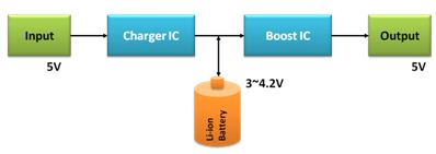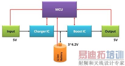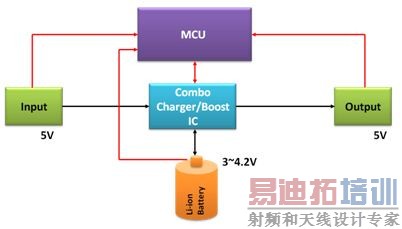 目前移动电源的电路方案大致上可分为三种,第一种方案是Charger IC + Boost IC,此种方案利用Charger IC对移动电源的锂电池充电,Boost IC对移动装置放电,如图1所示。第二种方案是MCU + Charger IC + Boost IC,除了第一种方案的部分外,多了MCU对锂电池及输入输出电压作侦测,此种方案目前比较常见,如图2所示。第三种方案则是MCU + Combo IC,此种方案是将Charger IC及Boost IC整合成一颗IC,可以减少零件的数量,节省PCB空间,如图3所示。而本文将针对目前比较常见的第二种方案做详细介绍。