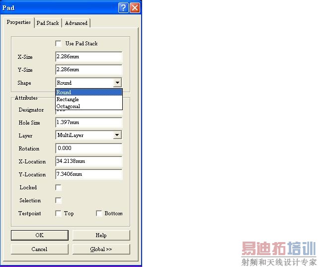 Allegro中的PAD有HOLE-TYPE选项,可以做三种类型的孔(圆的,椭圆的,矩形的).