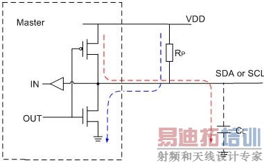 C是Bus capacitanceRp最大值由总线最大容限(Cbmax)决定,Rp最小值由Vio与上拉驱动电流(最大取3mA)决定;于是 Rpmin=5V/3mA≈1.7K(@Vio=5V)或者2.8V/3mA≈1K(@Vio=2.8V)。