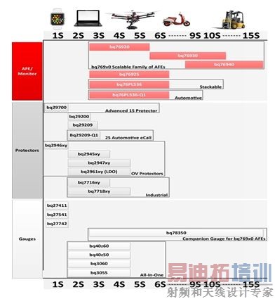 在为便携式应用选择锂离子电池组时,不论是智能手表还是电动自行车,这项任务并不像它看起来那么让人望而怯步。锂离子电池组有3个基本功能:保护、监视和电量计量。这3个功能通常由单个器件处理;然而,某些器件能够用集成度更高的解决方案来实现多个功能。事实上,由合适组件组成的电池组和这3个功能将提高系统性能、提供更多保护,并且能够实现更长的运行时间。本文第一部分将深入探讨电池保护。连同下面给出的信息,你一定要看一看图1的选型指南,以帮助你根据电池的大小来选择正确的器件,在这里1S表示1 = 1节串联,2S = 2节串联,等等。