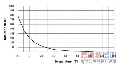 图2:热敏电阻器的电阻与温度