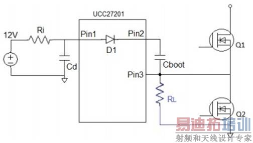 如图 12 所示,增加一颗电阻 RL后即可形成预充电电路。当 UCC27201 的 12V 建立后,在系统未发波前,12V电压可以通过路径 Ri->D1->Cboot->RL给 Cboot 充电。