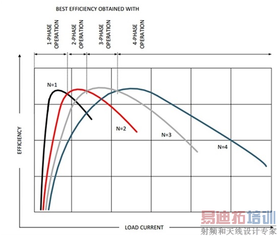 图3:多相位降压转换器效率与相位数量之间的关系